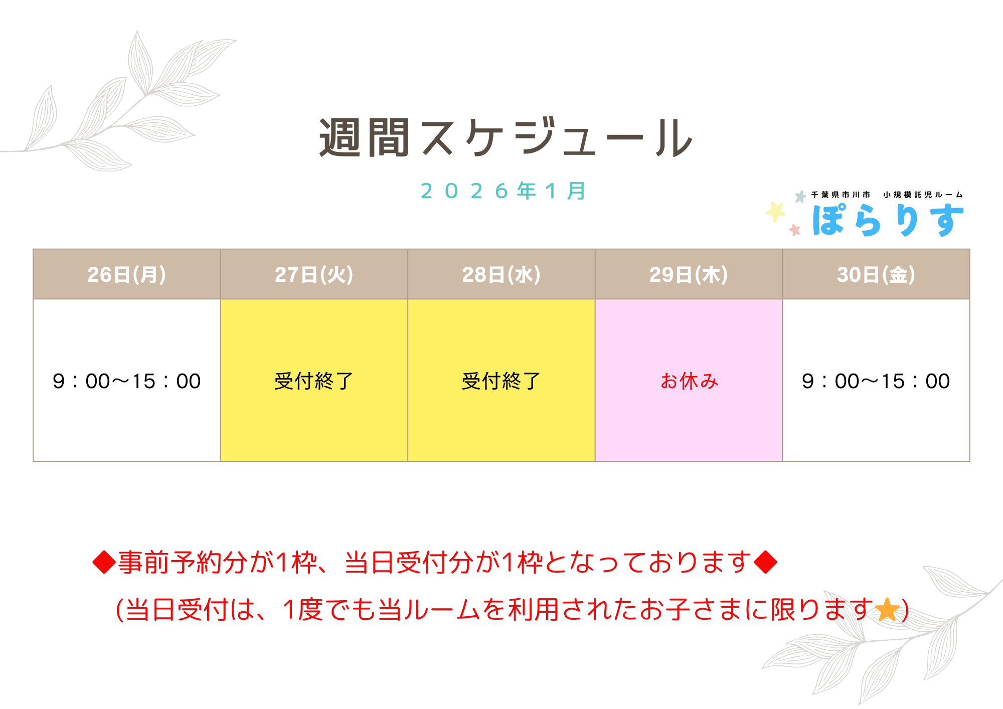 【市川市小規模託児ルーム ぽらりすからのお知らせ】1月最終週の営業時間のご案内🌼